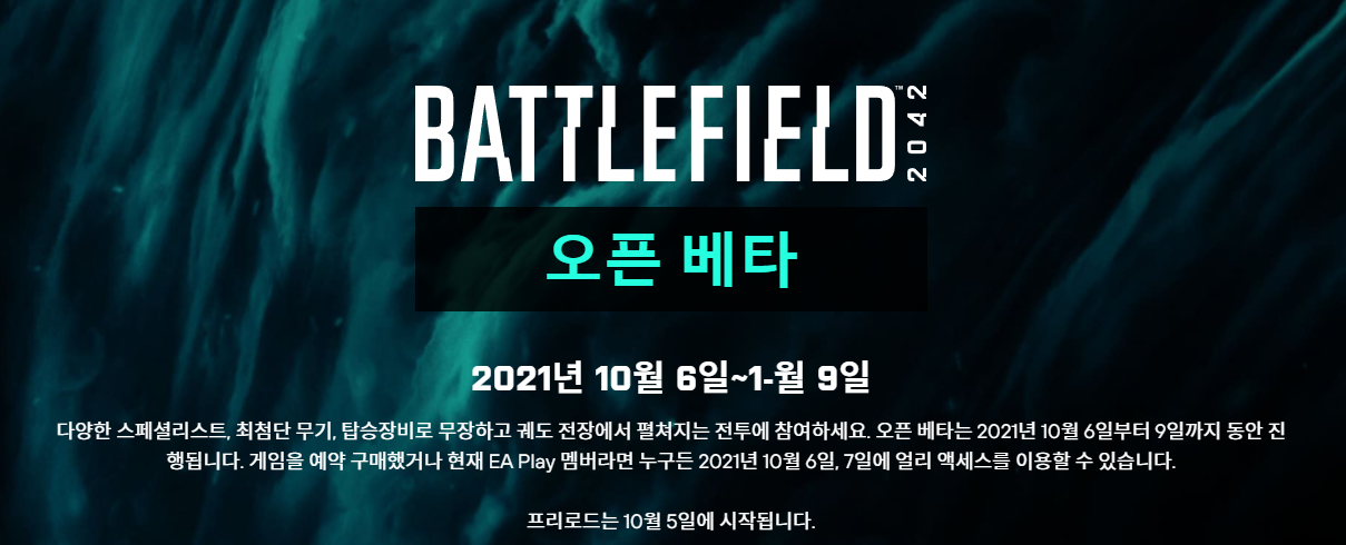 배틀필드 2042 오픈베타 날짜가 10월 6일부터 시작되며, 10월 9일에 끝납니다.